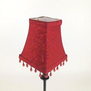 Dark Red Fabric Lamp Shade Tapered With Square Base Clip Mounting