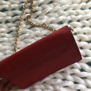 Dark red, golden chain, in great condition. You can use it as a clutch and a purse!