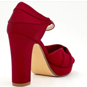 Crafted from luxurious red satin, these stunning heels from Chelsea Crew feature a playful criss-cross design that will have you turning heads wherever you go. The adjustable ankle strap ensures a perfect fit, while the chic peep toe adds just the right touch of flirty fun. Complete with a 3.5 inch heel.