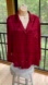 Get ready for any festive occasion … or just an evening when you want to feel more festive with this deep red silk blouse that could go from boardroom to boudoir, although to be fair, I think it’s supposed to be a pajama top. Fabric is 100% pure mulberry silk. Long sleeves. Slightly rounded collar. Breast pocket. Self- covered buttons. Sized Large on the tag inside the neck; tag in side seam specifies 12 in US sizing. Appears to have had some stretching on upper arm areas (shown), so perfect under a jacket or to wear around inside your own house. Good pre-owned condition with no holes, pilling, fuzz, or other issues noted.