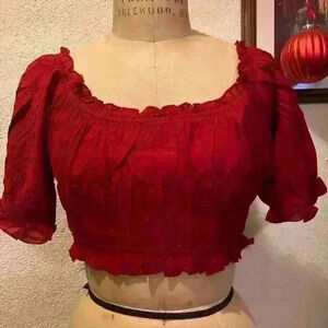 Dark Red Square Neck Ruffled Lantern Sleeve Cropped Top NWT Size L