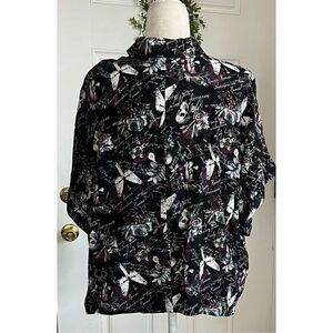 Need a top that screams, "Parting is such sweet sorrow"? We've got the perfect dark romance woven button-up for thee! This boxy top features an allover print of quotes in script font, plus dark icons of skulls, roses, daggers and more.