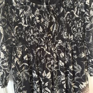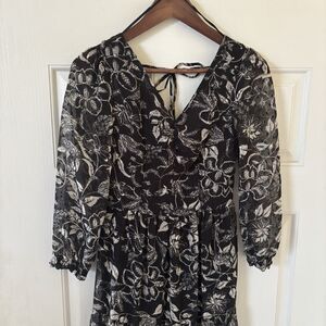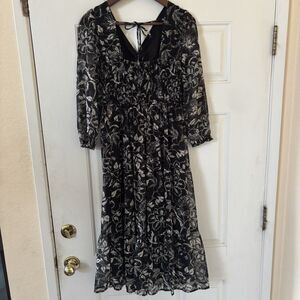 Dark Romantic Bohemian Womens Tiered Midi Dress Black S Floral Indie Concert