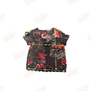 Embrace elegance and charm with this stunning floral top by Rewind. The velvet design adds sophistication, while the lace hem and sheer fabric enhance femininity. Size Medium