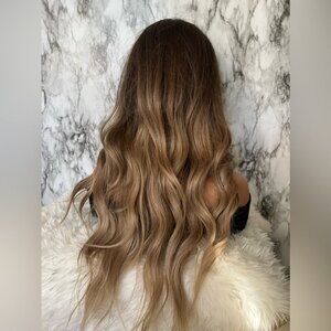 Dark Roots Ash Blonde Vegan Fiber ombre Wavy wig high quality