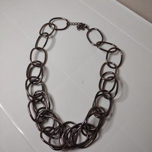 Dark Silver Tone Large Link Necklace Adjustable 26 To 26 Inches Long