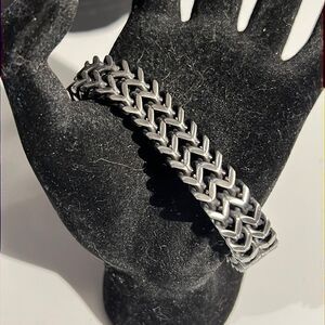 Dark Silver Tone Metal Bracelet with Magnetic Closure