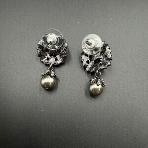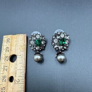* Dark Silver and Emerald Stud Dangle Earrings