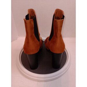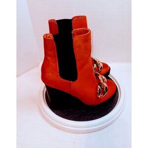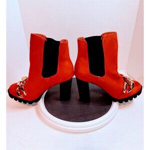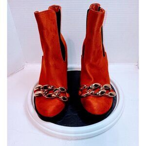 Dark Tan Heeled Ankle Boots With Gold Chain Embellishment Womens Size 9
