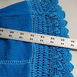 Dark Turqoise Gauzy Crocheted 3/4 Sleeve Top Blouse