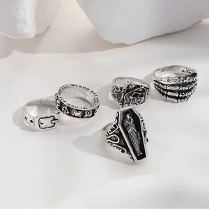 Dark Vintage Punk Skull Therapist Buckle Ring Set Women's Elegant Jewelry Acc