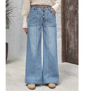 Dark Wash Blue Wide leg Button Fly Wide leg Denim Jeans