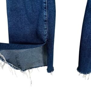 Dark Wash Flare Jeans Womens 27 Distressed Raw Split Hem Stretch Fall Western