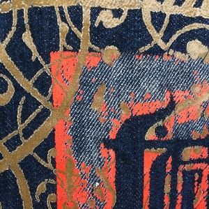 This Medium Dark Levi Jean Jacket has two breast pockets, and this cool red/ orange graphic print on the back, and above the two front pockets. There is some fading on the back (pictured) but it is really cool still. Will provide measurements upon request. Love this item, but not the price? Make me an offer! Or Bundle and Save! Happy Poshing! C