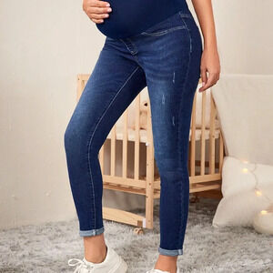 Dark Wash Women's Maternity High Waist Ripped Skinny Jeans