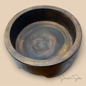 Dark Wood Bowl - Rustic Sculptural Accent Bowl with Feet