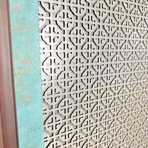 This decorative metal earring hanger is the perfect addition to your jewelry organization collection. The dark wood frame and teal mat provide a stylish and elegant look that will complement any room decor. The hanger is designed to hold multiple pairs of earrings, making it suitable for any jewelry lover.