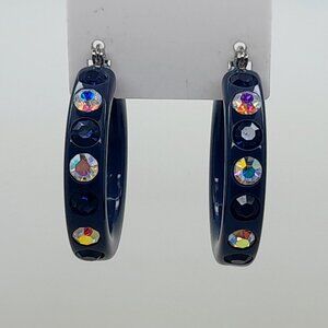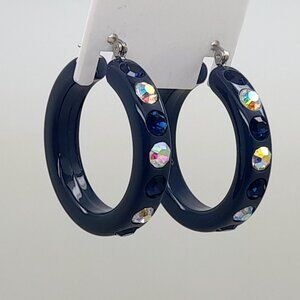 Dark blue Lucite Acrylic wide 1.5 Hoop dk blue & ab Latch back Fashion Earrings