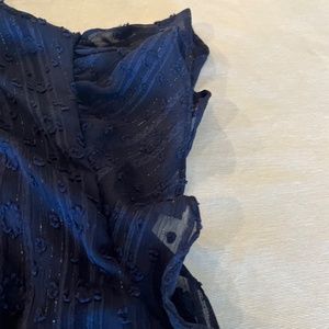 🎉Host Pick!🎉 This is a flirty little dress that hits above the knee (or higher if you're not a petite) and can go from day to night. It is lined and made of a dark blue fabric with silver threads shooting through. It is a petite medium and has never been worn.