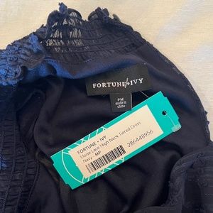 Dark blue, high neck, tier dress by Fortune and Ivy size MP w/ flutter sleeves