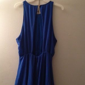 Dark blue open back dress and elastic bottom the third picture shows the bottom I wasn't sure how to describe it
