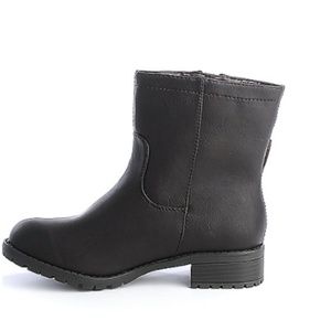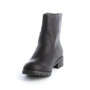 The modern chic ankle boot features a leatherette (man made) upper with a rubber outsole