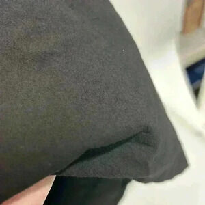 Doesn’t say what fabric it’s made out of could be cotton. There is a softer probably polyester lining on the skirt on the inside.