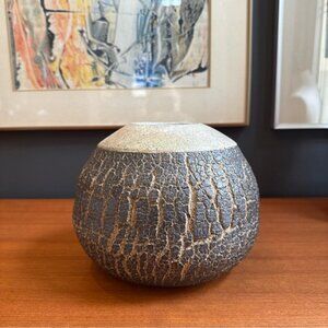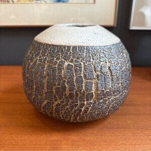 Dark brown crackle glaze vase signed art pottery Large Signed