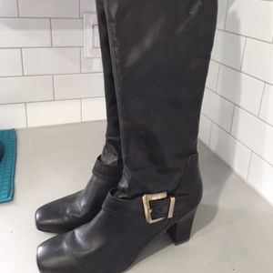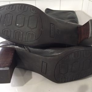 Dark Brown women’s boot. 18” from arch of food to below knee. Lizard embossed around ankle.