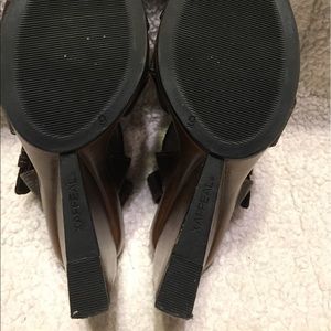 Dark brown very comfortable wedges. Worn one time. Heel is faux wood. Practically brand new.