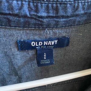 Old navy, dark chambray quarter button down. Great on its own or for layering