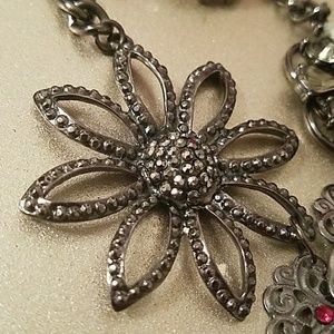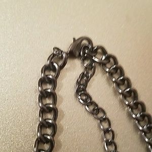 Dark chrome necklace & earring set w/ red stones. A couple of small red stones missing on the necklace but otherwise looks new.