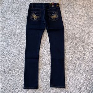 Dark denim jeans with beautiful butterfly stitching’s on the back pocket with Stretch for a perfect fit.
