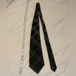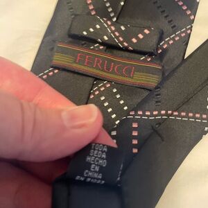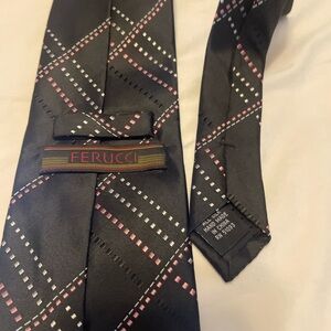 Beautiful 100% silk hand made Ferrucci tie and dark gray with cream and peach accents. Perfect for a black or gray suit. Good preowned condition with no stains or flaws.