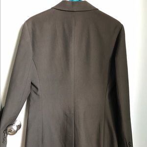 Dark gray blazer. Tag said "olive" color. Has a button in the middle and on the sleeves and three working pockets. Never worn.