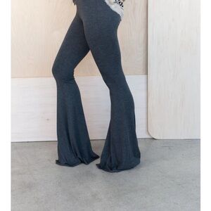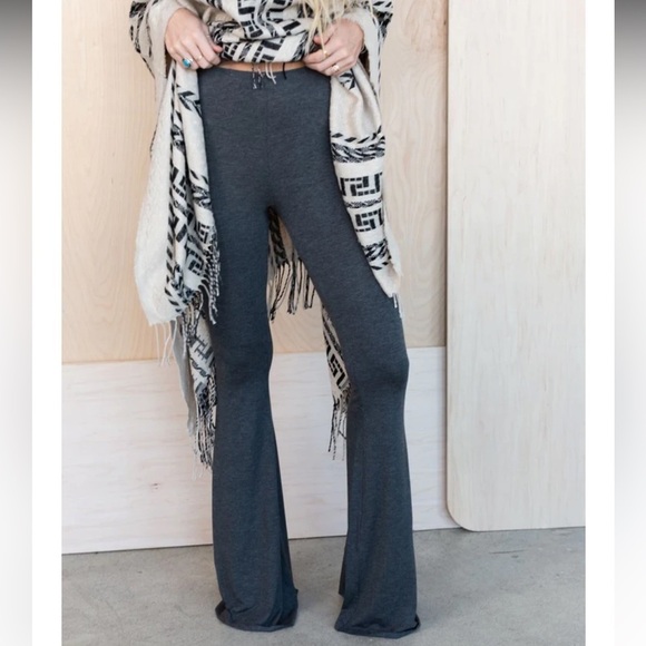 Dark gray flare hem raw edge stretchy pants, Cher inspired style. These are designed to be able to cut to your desired length. See photos for measurements. New in original package. 95% rayon 5% spandex.