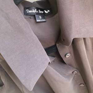 Dark gray sheer button up with shoulder peep holes. So cute!