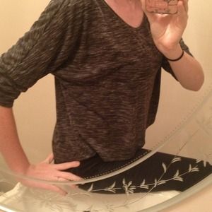 Dark gray with white. I'm a small am it fits me like that. But it is an x-large. I wear of both shoulders or just one or on both sometimes.