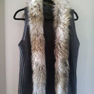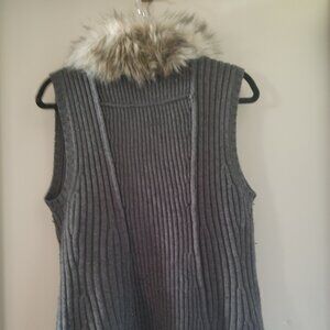 Guess Women's Sweater Vest Gray, Tan Faux Fur Embellished Sleeveless Size Large