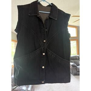 Dark gray wash vintage inspired sleeveless chore jacket women’s plus size 2X