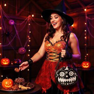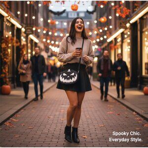 Style Tags: dark in love ✦ pumpkin queen ✦ halloween bag ✦ gothic crossbody ✦ spooky purse ✦ jack-o’-lantern ✦ sugar skull ✦ vegan leather ✦ NWT ✦ seasonal capsule