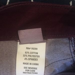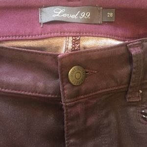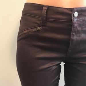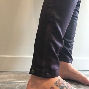 These smooth pants are so fun to wear! They are a deep maroon and have a slight silver iridescent touch to them. The ankles have zippers and button detail. Only worn 1x. Model's measurements: 31/27/38
