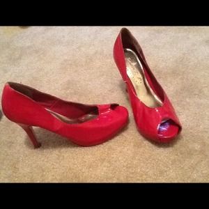 Dark pink, Faux leather stilettos. Slight wear on left heel