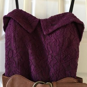 Strapless dark purple lace dress with matching belt! Never worn with tags still attached. Great for fall with boots and a cardigan.
