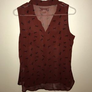 Sheer blouse top with two small pockets in the front. Collared and patterned.