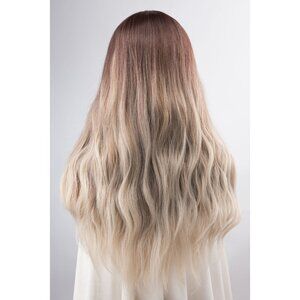24" Dark Root Ash Blonde Ombre Wavy Wig. Made with heat resistant synthetic fibers so the hair can be styled with a curling iron or flat iron under 250F° degree. The cap is adjustable for easy wear and it mimics the look of a natural scalp.The Wig is open wefted with inner layer cap so you will feel light and comfortable when wearing it.