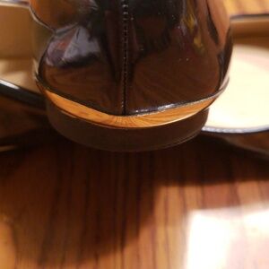 Gently used dark teal pointed toe ballet flats. Gold accent on heel. Minor creasing.