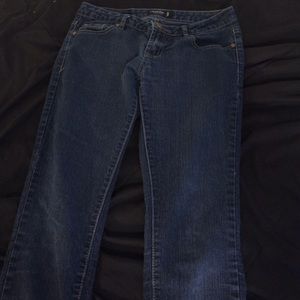 Dark wash skinny jeans that are size 3. Well worn but still in great condition. Price is not locked so make me an offer :)