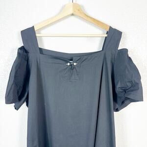 Darkwin Womens Cold Shoulder Poplin Tunic Lagenlook Dress in Black Size 2X