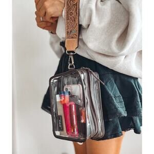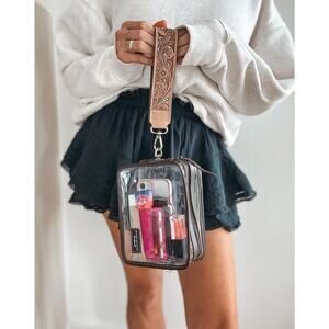 Darla Clear Wristlet Hand Tooled Strap Western Purse Black Festival Concerts Stadiums